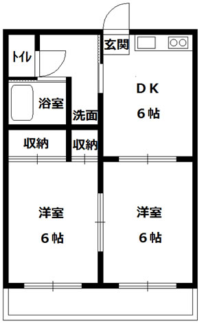 洋室6帖×2室、台所6帖